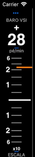 Opção para o painel do iPod. Dá capacidade de medir a velocidade vertical com base em um barômetro integrado (presente no iPhone 6, iPad Air 2 e posterior). Na orientação retrato do iPhone mostra um gráfico, dando um pouco de visão histórica sobre os valores: