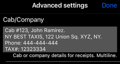 Foi um pedido comum para poder mostrar o número de telefone da empresa, o número de registro do imposto ou qualquer outro detalhe no recibo. Informações de cabine alinhada na versão 1.4 simplesmente não eram suficientes para isso. Agora, as informações da cabine / empresa permitem até 4 linhas: