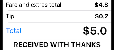 O total mostra $ 4,8, mas o cliente diz “US $ 5” esperando o recibo por US $ 5,00? No recibo, toque apenas no botão “Total”