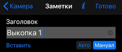 После съёмки фото, вернуться к редактированию заголовка можно через МЕНЮ > МЕТКИ и нажав прямо на фото на рядке метки. Или через нижнюю правую кнопку для показа списка меток.