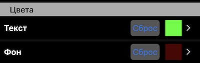 Для возврата к цветам по умолчанию используйте кнопку “Сброс” на рядке с цветом.