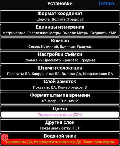 Как то так получилось, что до версии 1.5 все новые настройки “прятались” в пункте “Настройки съёмки”. Теперь настройки слоёв, штампа времени и водяного знака вынесены на главный экран настроек: