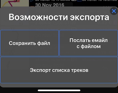 «Сохранить файл» предложит выбрать формат обмена (весь «Архив поездок» или Google kmz) и предложит сохранить в iCloud, Dropbox и т. Д. Опция «Отправить файл по электронной почте» дает только возможность отправки по электронной почте.