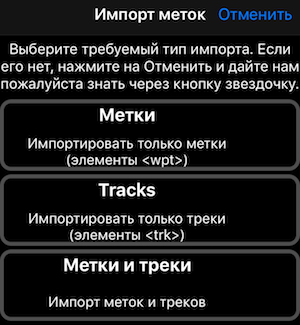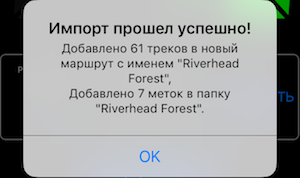 Все метки из целого файла всегда импортируются в новую папку с именем, как и у файла. Все треки записываются в новый маршрут, тоже с именем, как у файла. К тому же каждый трек записывается как отдельный трек.
