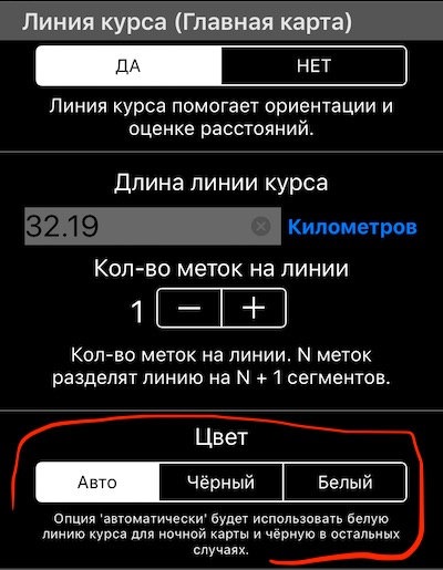 Автоматическая настройка цвета будет показывать белую линию на ночных картах и чёрную линию во всех остальных случаях. Пока нет выбора любого цвета, сначала решим особенности тёмного режима в iOS 13 и потом к этому вернёмся.