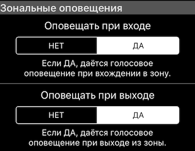 Круговые зоны - оповещение при входе в них и выходе.