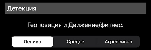 - Политика обнаружения по умолчанию — «Лениво». Приложение будет обрабатывать местоположение в течение 15 минут после пробуждения от Apple/iPhone, в зависимости от существенного изменения местоположения или активности. Если в течение этого времени не обнаружено автомобильной активности, вождения, приложение сдастся и вернется в состояние глубокого сна или даже в выключенное состояние.