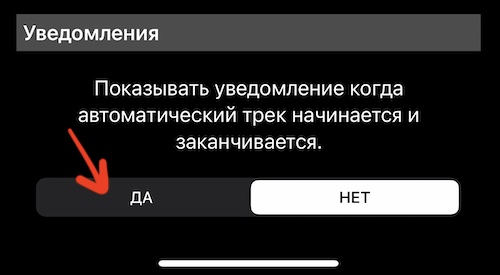 Было бы здорово знать, что приложение запустило или остановило запись. Находясь на этом экране настроек автоматической записи, прокрутите до раздела «Уведомление» и нажмите «ДА», чтобы получать уведомления о запуске или остановке треков: