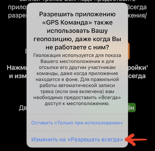 #1 — авторизация доступа к текущему местоположению, по умолчанию «Когда используется». Здесь нам нужно «Всегда разрешен». Нажмите «Изменить на Всегда разрешать».