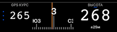 Погрешность измерения высоты показывается всегда под показаниями высоты.
