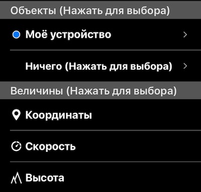 Можно выбрать и комбинацию объектов, например “Моё устройство” и красную стрелку или метку (при режиме карты без центровки).