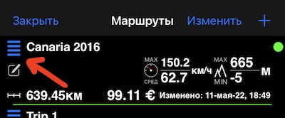 В списке «Маршруты» (МЕНЮ > МАРШРУТЫ):