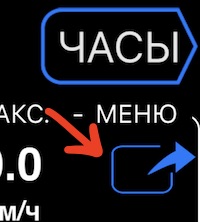 МЕНЮ > Треки > Коснитесь рядка трека. Прокрутите пальцем нижнюю часть графика, чтобы установить синий курсор на карте на нужную точку (или время/расстояние) и нажмите кнопку #3 на верхней панели инструментов: