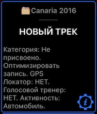 Кнопка «НОВЫЙ ТРЕК» в меню показывает параметры, с которыми начнется запись трека, а также предоставляет кнопку настроек для изменения этих параметров: