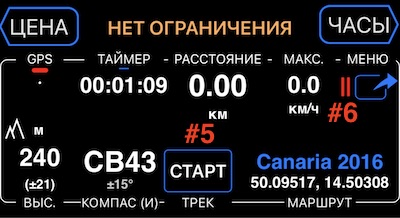 #3 - Индикатор слежения. Зеленый квадрат означает, что журнал GPS-трекинга записывается и запись оптимизирована (данные отфильтрованы, поэтому трек на карте плавный, но некоторые неважные точки можно отфильтровать).