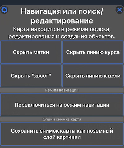 чтобы отобразить меню карты в режиме редактирования. Опции, представленные в этом меню, могут различаться для разных приложений (например, сохранение снимка карты — единственный параметр, доступный в приложении Planimeter 55).