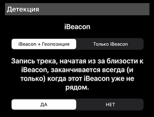 «iBeacon + местоположение» будет использовать близость iBeacon для запуска / остановки, но когда iBeacon отсутствует, приложение будет переключаться на анализ местоположению для начала и конца записи. Это то, что можно использовать для отслеживания старта/остановки во время утренней поездки на машине, а затем, при необходимости, для записи пробега в трамвае/автобусе, без iBeacon.