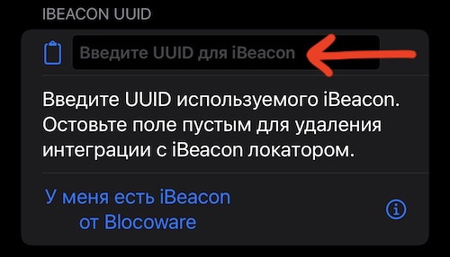 Используйте кнопку «буфер обмена» слева от текстового поля iBeacon, чтобы вставить UUID iBeacon.
