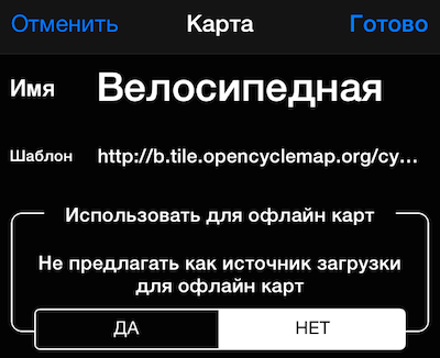 Карту можно загрузить из онлайн источника (пожалуйста, соблюдайте правила провайдера карт) для дальнейшего использования без доступа к интернету. Нажмите на кнопку “+” выберите “офлайн карта”: