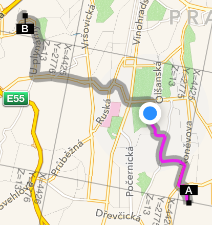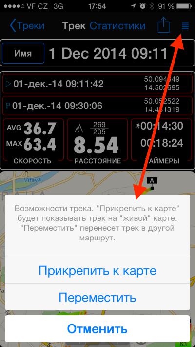 Прикрепленный к живой карте трек помогает вернуться по нему назад или повторить путь.