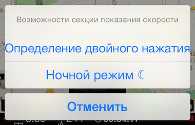 В полноэкранном режиме свайп влево или вправо на нижней панели меняет ограничение скорости (не забудьте о возможности наставить голосовое подтверждение выбранного ограничения). Продолжительное нажатие на цифры скорости откроет меню ночного режима и двойного нажатия: