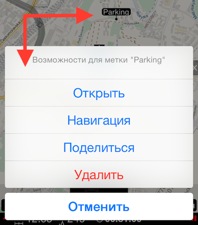 Продолжительное нажатие на карте откроет меню дополнительных возможностей: