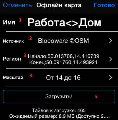 Для загрузки карты ей необходимо дать имя (1), источник загрузки (2, может быть и Вами заданный источник), обозначить регион к загрузке на карте (4) и выбрать масштаб (4). При выборе масштаба никогда не бойтесь выбирать масштаб от желаемого максимального (например 16) до минимального как 1. Маленькие масштабы занимают очень мало места, но потом хорошо помогают найти загруженное место на карте.
