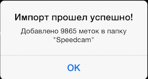 На айфоне 6 импорт 60 тысяч точек занимает около 30 секунд. Спидометр подтвердит окончание импорта: