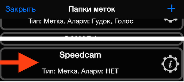 И теперь осталось выбрать эту новую папку для предупреждения. Для этого в панели “радара” меток нажмите на название актуальной папки с метками: