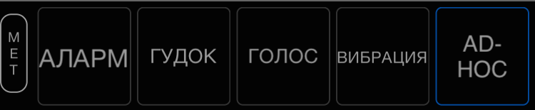 Нажмите на “ГОЛОС” для активации голосового предупреждения об автоматически установленном ограничении и на “АЛАРМ” для активации автоматической установки ограничений. “AD-HOC” кнопка справа или внизу радара меток показывает название выбранной папки меток и позволяет выбрать другую папку.