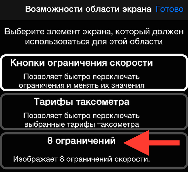 Как только спидометр стал запоминать ограничения, то стало очевидным, что 4-х ограничений часто не хватает. Подержите палец на кнопке “Ограничения”: