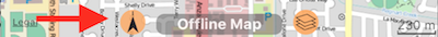 #14 - расстояние между Вашим актуальным местоположением и красной стрелкой (центром карты).