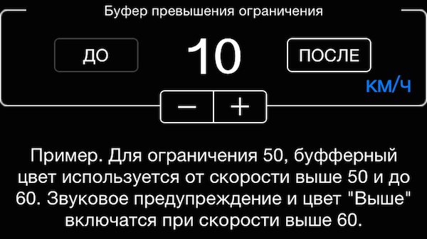 Позволяет наставить дозволенное превышение как Х км/ч или как Х% от величины ограничения.