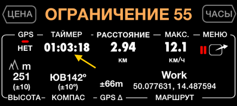 В панели “GPS + Трекинг” таймер показывается по умолчанию.