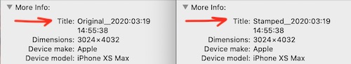 Теперь имя объекта IPTC заполняется префиксом «Original_» или «Stamped_» плюс дата съёмки, так что вы можете легко различать оригинальные и штампованные изображения на основе метаданных: