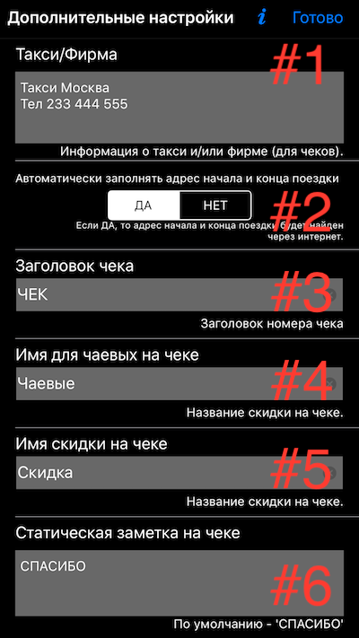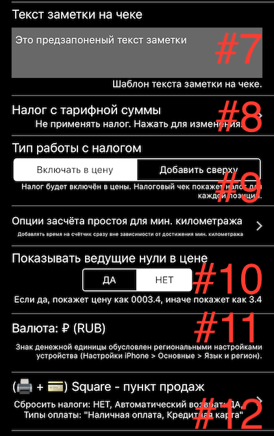 Таксометр. Дополнительные настройки.