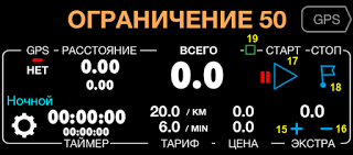 Панель управления тарифами и поездкой такси.