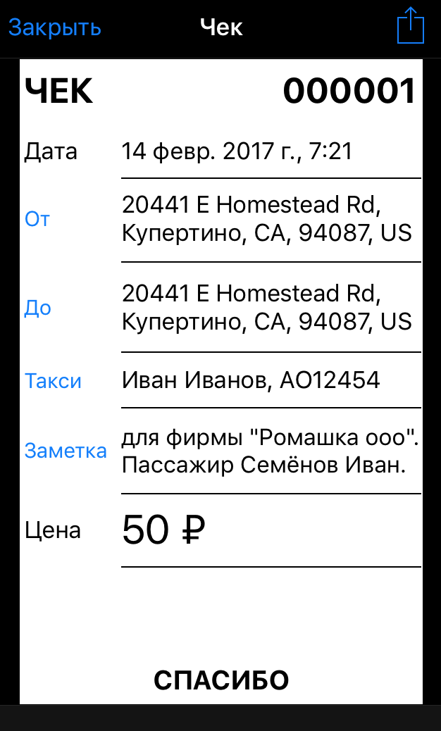 Обратите внимание, что ярлыки полей “От”, “До”, “Такси”, “Заметка” являются кнопками.