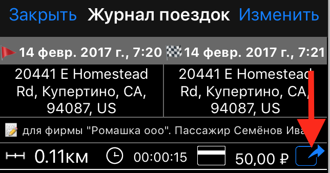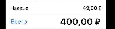 Как всегда чаевые или скидка подсчитывается сама в зависимости от поля “Всего”. Нажмите на кнопку “Всего” для изменения финальной цены поездки.