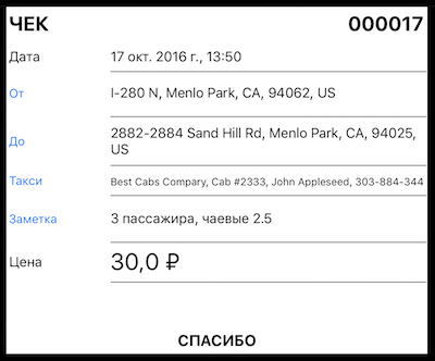 Поле Заметка на чеке позволяет добавить произвольную информацию. Кнопки От и До на чеке позволяют добавить адрес и вручную.